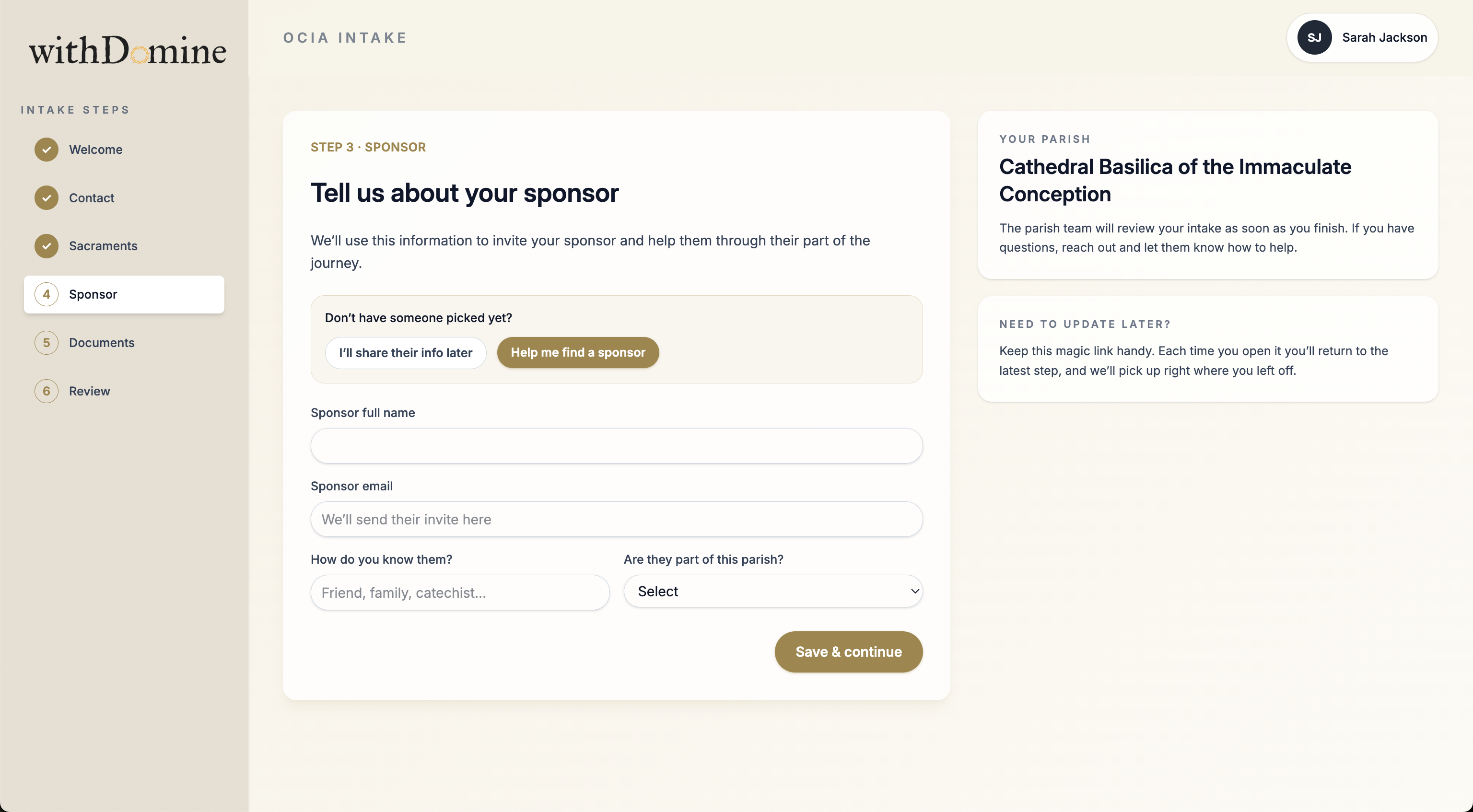Sponsor still needs to be added before the next rite.