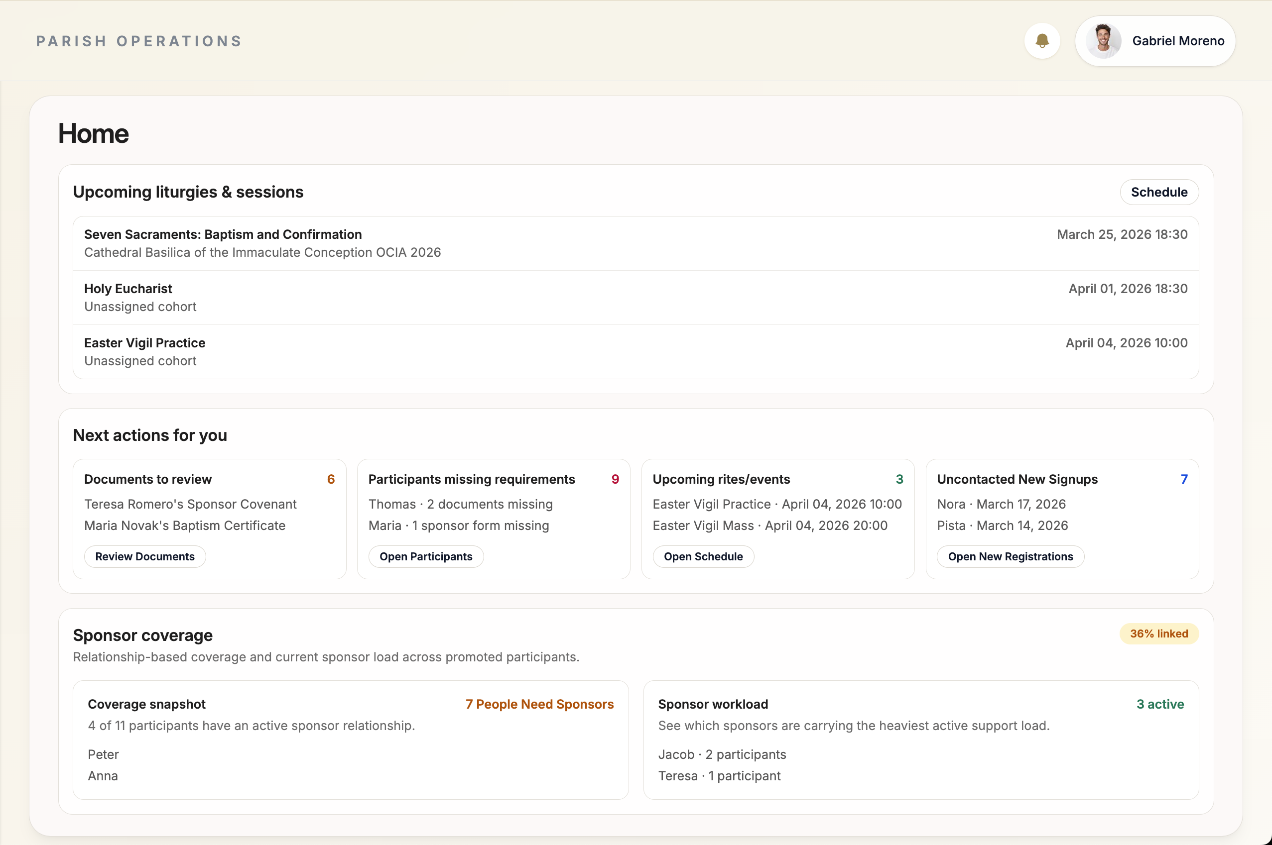 OCIA programs have always been scattered across spreadsheets, emails, and memory. This is the first time it all lives in one place.